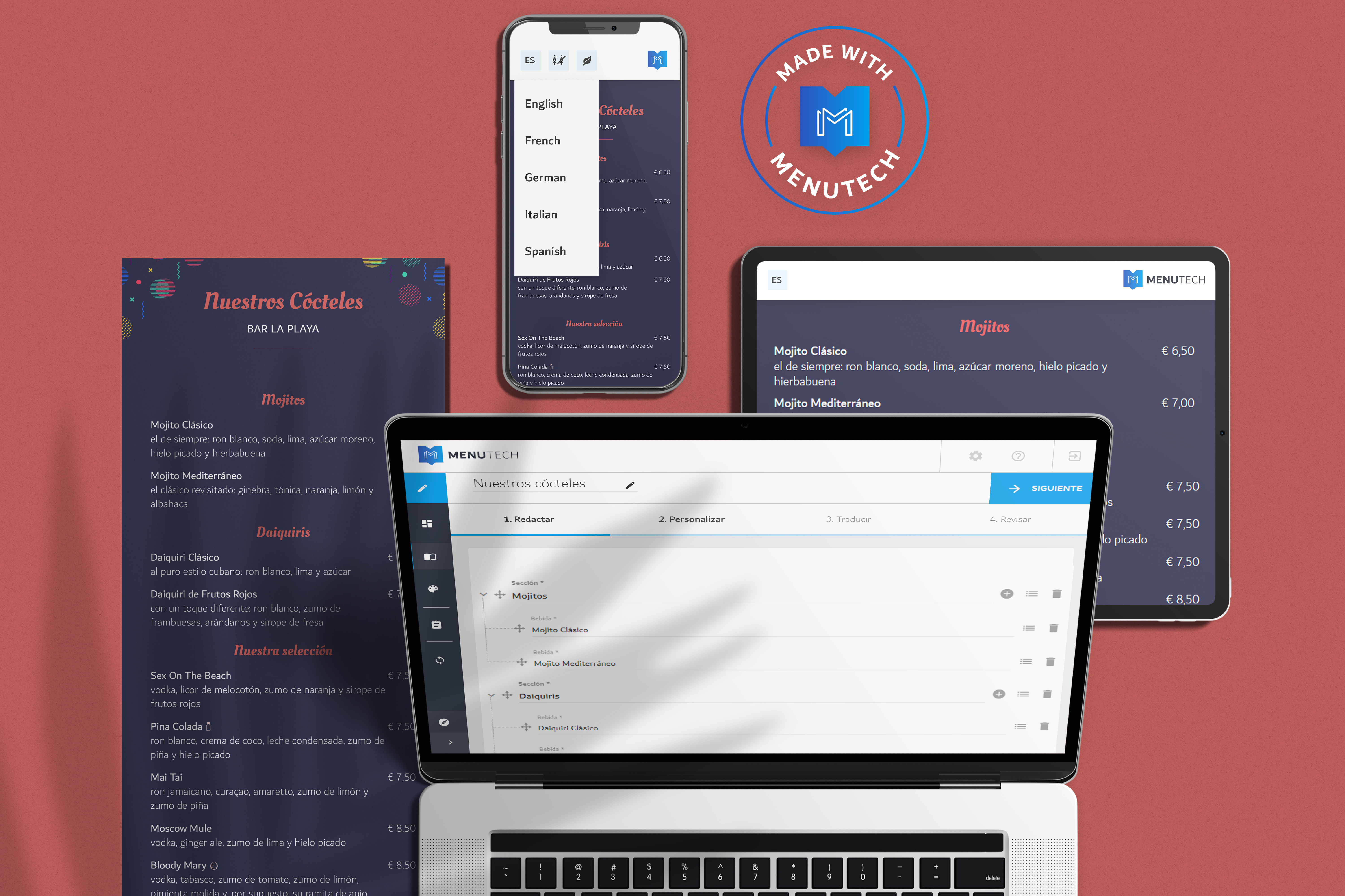 ¿Necesita actualizar precios y descripciones? Menutech es la forma más rápida de preparar cartas de bebidas impresas o digitales para sus clientes.