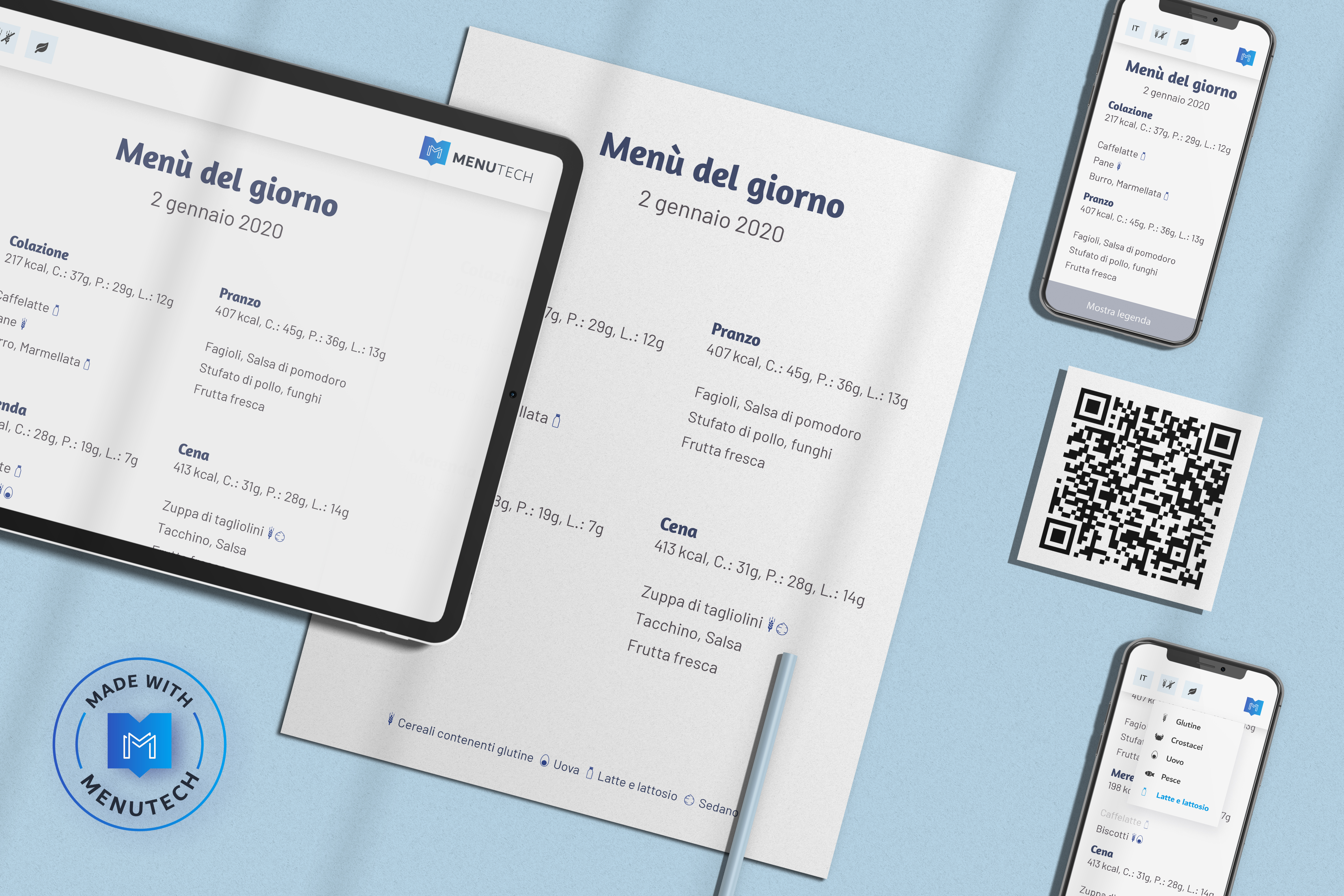 Hai bisogno di aggiornare allergeni e valori nutrizionali? Il software Menutech è la soluzione più semplice e immediata per preparare menù ciclici - sia cartacei che digitali - per i tuoi ospiti e pazienti.